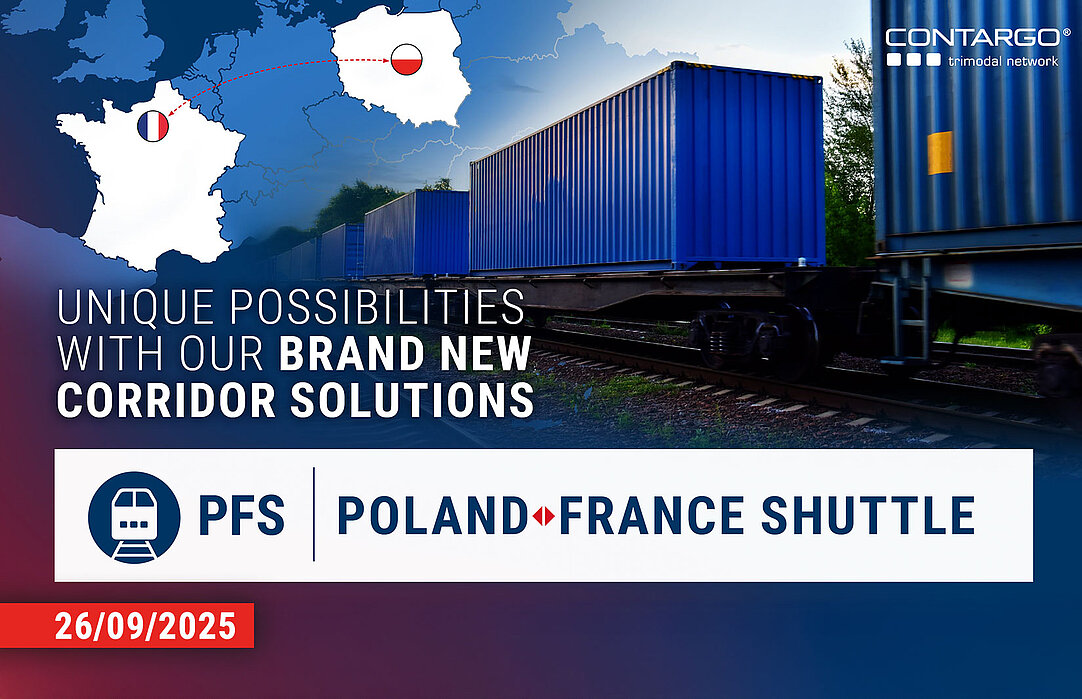 On 26 September, the PFS – Poland France Shuttle will set off on its first journey from Krzewie to Dourges. Together with the Duisburg Dourges Shuttle, which has already been running since 1 September, Contargo will be able to avoid up to 1,500 truck journeys per month on these routes.